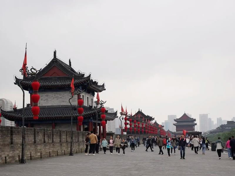 西安城墙,即明城墙,是中国现存规模最大、保存最完整的古代城垣。 它是在唐代长安城皇城的基础上,于明朝洪武年间(公元1370年)历经数次扩建修筑而成,全长约13.74公里,城高12米,底宽18米,顶宽15米。城墙的结构体系严密,包括护城河、吊桥、箭楼、正楼、角楼、敌台等一系列军事设施,形成了“城、郭、墙、壕”四位一体的防御系统。这座古老的城墙不仅是重要的军事防御工程,更是西安作为十三朝古都历史变迁的见证者。游客可以从永宁门(南门)、安远门(北门)等多个城门登城,在宽阔的墙顶上可以徒步、骑行或乘坐电瓶车环绕古城一周。站在城墙上,向内可以看到古城区的棋盘式布局和钟鼓楼等标志性建筑,向外则能感受到现代化都市的活力。它完美地将古代防御智慧与现代城市景观融合在一起,是体验古都历史底蕴的绝佳去处。